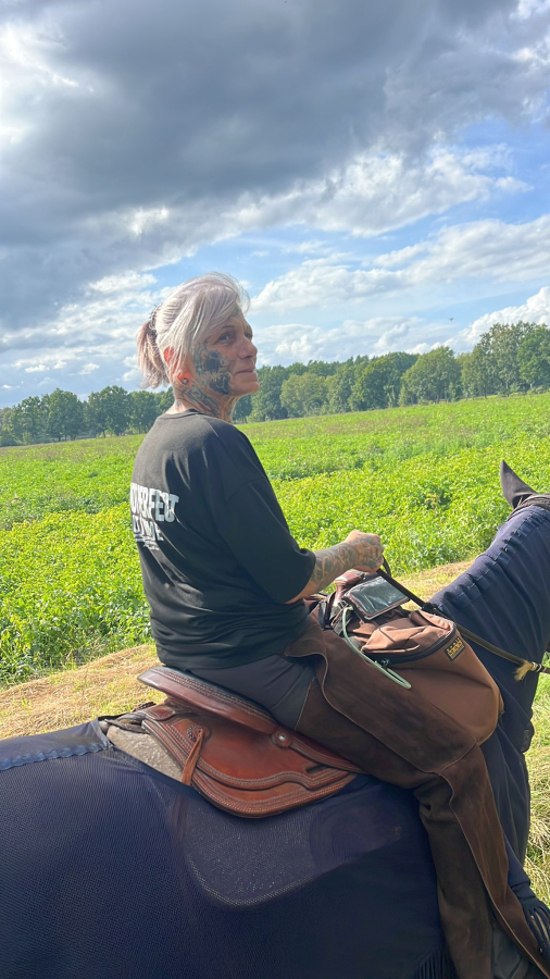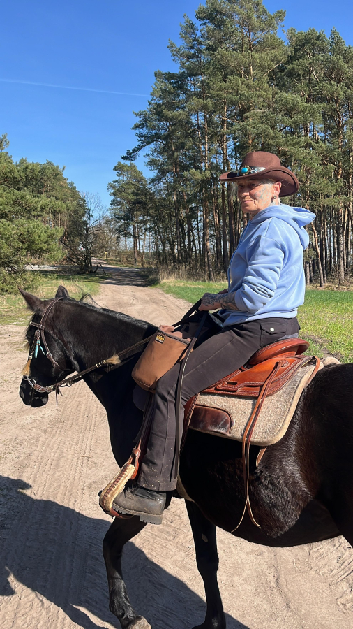 Hallo , ich bin eine junggebliebene 61 jährige mit 3 Pferden und 3 Hunden. Ich würde mich über einen Partner freuen, der dieser Leidenschaft ebenfalls verfallen ist. Gemeinsame Ausritte, Kutschfahrten , Wanderritte, usw. Meine zweite Leidenschaft gilt dem tätowieren. Ich hatte mal 15 Jahre ein Tattoo und Piercingstudio.